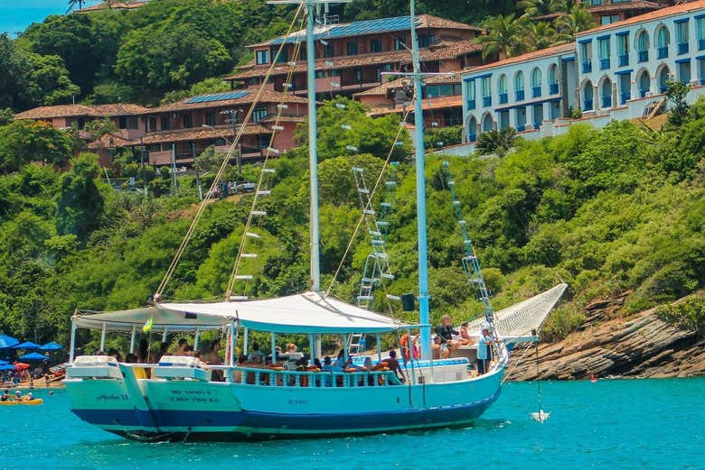A la hora indicada pasaremos a recogeros por vuestro hotel de Búzios. Desde allí, nos dirigiremos al muelle donde nos subiremos a una goleta. Se trata de una embarcación de madera pulida, velas amplias y ese aire nostálgico que os hará sentir como si navegáramos a través del tiempo.