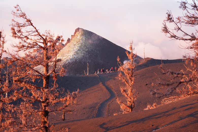 La ruta de senderismo, de aproximadamente 8 kilómetros y de baja dificultad, nos llevará a caminar entre cenizas y lapilli, observando a su vez pinos canarios que se han ido regenerando en este paisaje volcánico. Todo ello, siempre rodeados de los intensos colores que van cambiando a medida que el sol va cayendo sobre nosotros.
