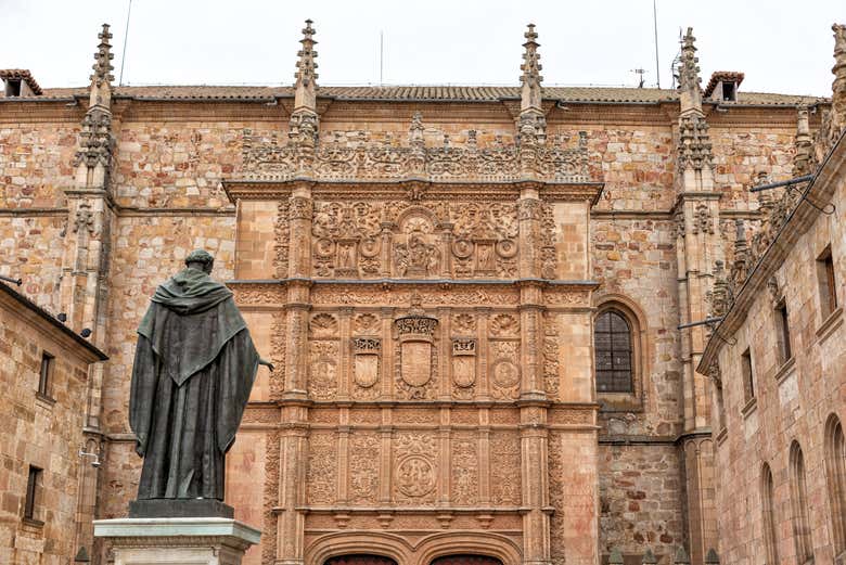 A la hora indicada comenzaremos nuestra visita guiada por la Universidad de Salamanca desde la estatua de Fray Luis de León, situada en el icónico patio de las Escuelas.