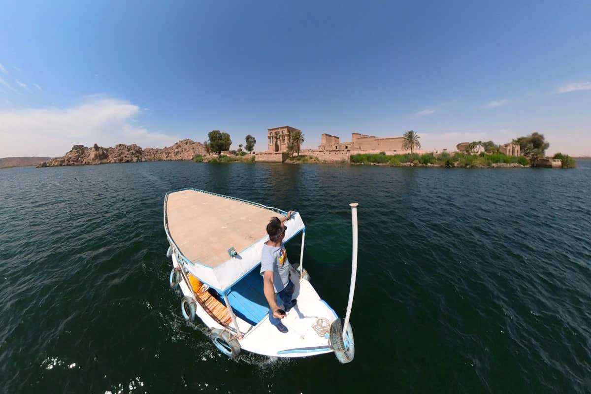 Volvemos a Asuán para visitar otro de los templos que, literalmente, fueron salvados de las aguas. Rodeado por el lago Nasser, se llega a él en una barca.