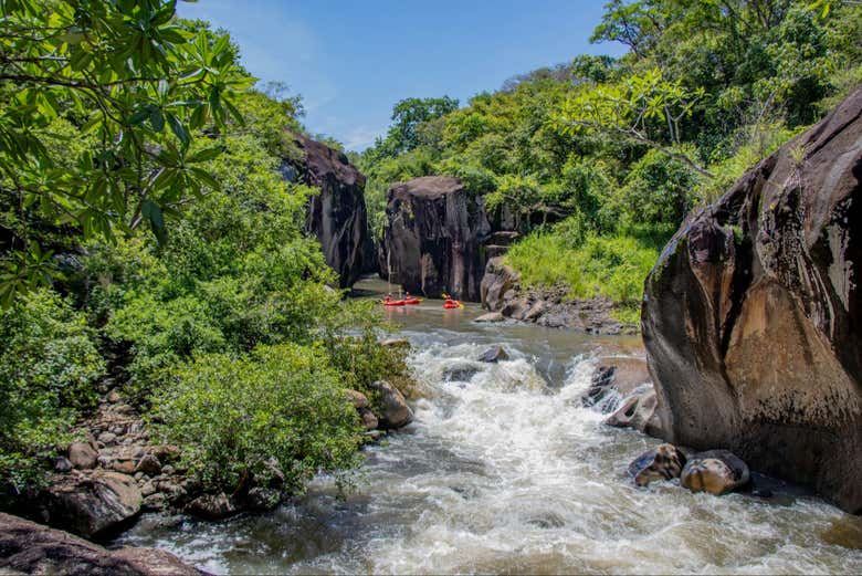 O percurso de dois quilômetros, com duração aproximada de duas horas, nos levará por um cenário natural único. Estaremos rodeados por paredes de 10 metros de altura do cânion que abrigam petróglifos com mais de 1500 anos. Enquanto remamos, poderemos avistar macacos bugios, macacos capuchinhos e uma grande variedade de aves nativas.