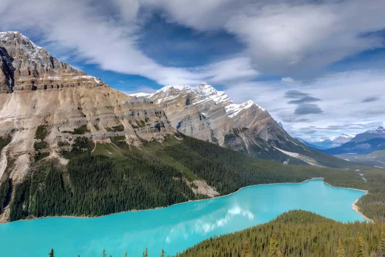Pronto para o quarto dia? Percorreremos a Icefields Parkway, considerada uma das estradas mais espetaculares do mundo. Veremos o glaciar Bow e o lago Peyto. Opcionalmente, você terá a oportunidade de fazer um voo de helicóptero sobre o Campo de Gelo Columbia ou caminhar sobre a geleira Athabasca com grampões.