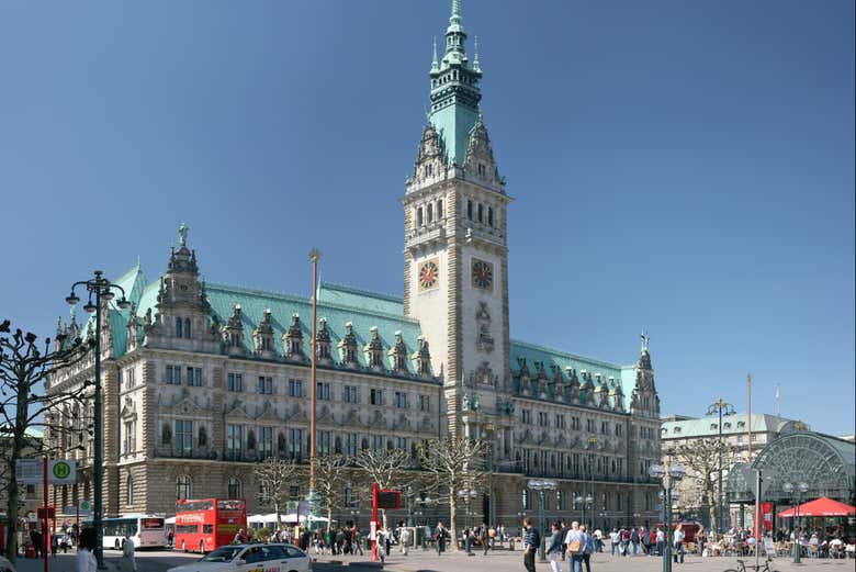 Close by, we'll find the Hamburg City Hall, where we'll reveal all the details behind its unique architecture. Additionally, we'll visit the St Nikolai Memorial, a monument about the bombings that took place during World War II.
