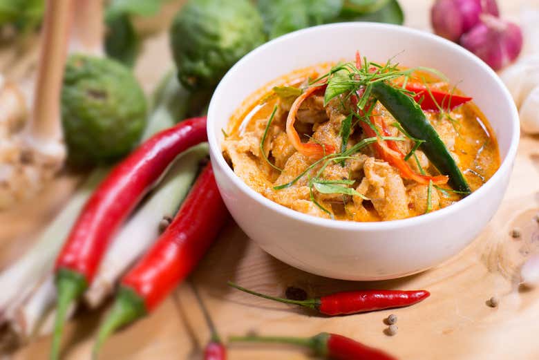 Throughout the morning, we'll prepare three different traditional Thai dishes. You'll learn how to prepare khung saroon, Thai chicken with veggies, and Panang curry.