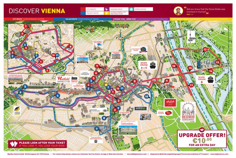 Some of the most interesting stops on the tour are Opera, Stadtpark (City Park), Mariahilferstrasse, Schönbrunn Palace, and Hofburg and Belvedere Museums.