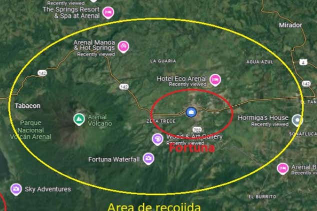 Este tour incluye la recogida en los hoteles situados en Arenal (en la falda del volcán o cercanos al mismo) y el distrito de La Fortuna. En caso de que estéis fuera de estas zonas, os recogeremos por un suplemento de 40 US$ por vehículo.