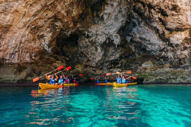 Alcanzaremos rincones de difícil acceso por tierra, lo que nos permitirá apreciar la costa desde una perspectiva de lo más privilegiada. Durante la ruta en kayak, os explicaremos curiosidades acerca de este entorno de grutas marinas. Aprenderemos cómo la acción combinada del agua de lluvia y del mar puede generar sistemas subterráneos de gran complejidad.