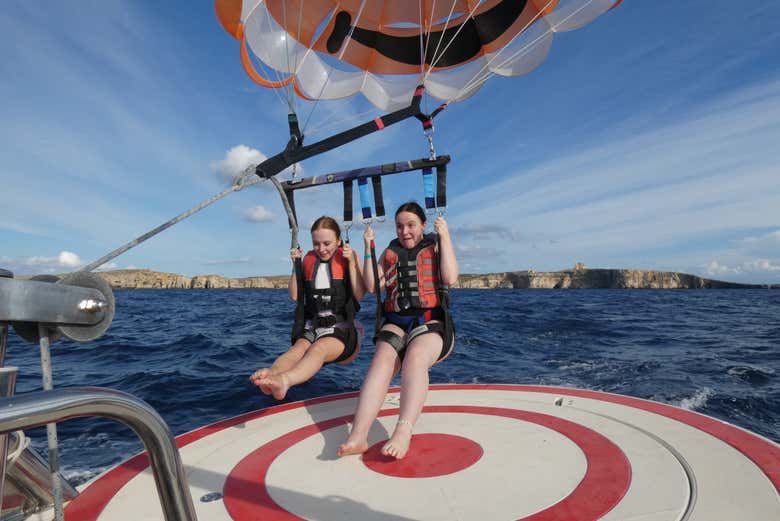 Transcurridos los 15 minutos de vuelo en parasailing, aterrizaréis de forma suave sobre la plataforma del barco y regresaremos al punto de encuentro. ¡Hasta pronto!