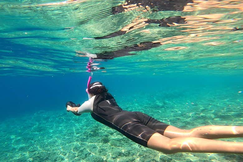 No os preocupéis si es vuestra primera vez utilizando este dispositivo. El monitor de la actividad os enseñará cómo manejar el scooter submarino. Podréis usarlo mientras practicáis snorkel durante un periodo de entre 45 minutos y una hora, en función de las condiciones meteorológicas y del estado del mar.