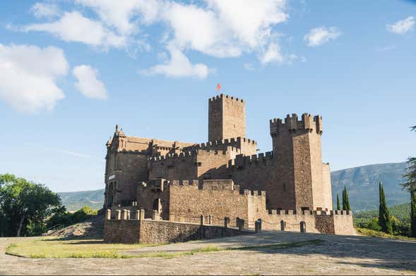 La excursión seguirá en el castillo de Javier, donde llegaremos en solo 20 minutos. Se trata de una fortaleza de origen medieval que presenta elementos defensivos como torreones, almenas y un sistema de murallas adaptado a la topografía del terreno.