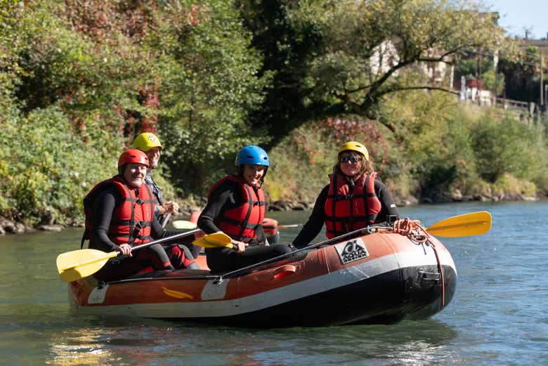 Tras una breve charla sobre seguridad y las técnicas de remo, nos equiparemos con el neopreno, el casco y el chaleco salvavidas para dar comienzo a nuestra aventura. Subiremos a las balsas en el tramo de Rieulhes para iniciar un descenso lleno de emoción por el río Gave de Pau.