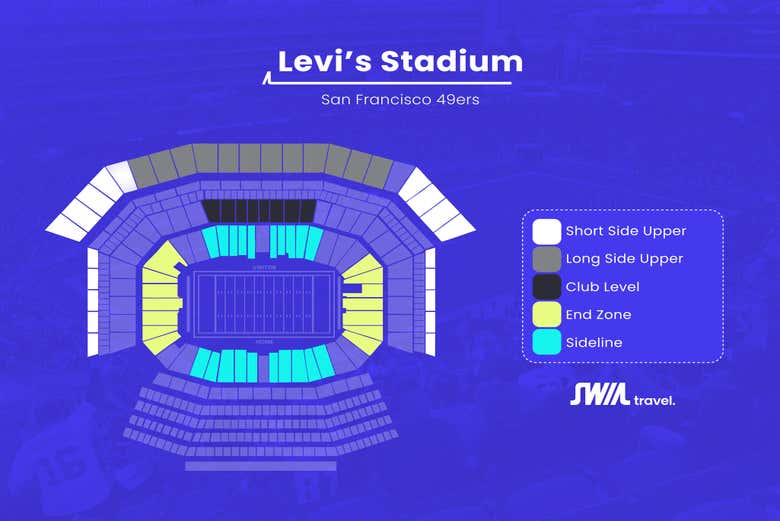 En el siguiente enlace podéis ver un plano del Levi’s Stadium con los diferentes asientos disponibles:
