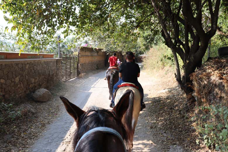 Durante una hora y cuarto de cabalgata, bordearemos las faldas de las montañas y disfrutaremos de la tranquilidad que emana este Pueblo Mágico al sur de Ciudad de México. Sin duda, será el momento perfecto para desconectar, respirar aire puro y contemplar el paisaje desde una perspectiva privilegiada.