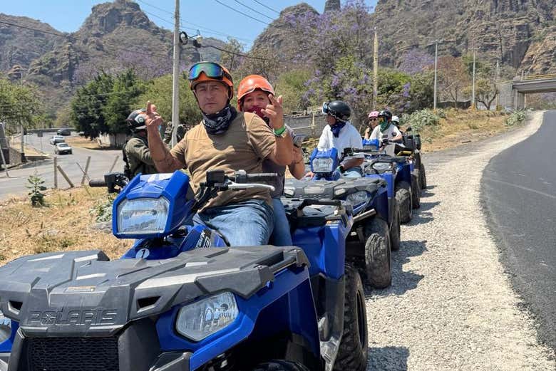 A la hora indicada nos reuniremos en la avenida Revolución, en pleno corazón de Tepoztlán. Allí os entregaremos todo el equipo de seguridad y os daremos una breve charla sobre el manejo de los vehículos. ¡No os preocupéis si es vuestra primera vez! Estos quads son muy sencillos de conducir y os enseñaremos todo lo necesario antes de arrancar.
