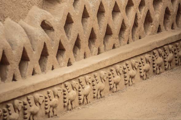 En primer lugar, haremos una parada en Huaca Arco Iris y Huaca Esmeralda. Tras visitar estas antiguas huacas o santuarios, visitaremos la antigua ciudadela de Chan Chan, construida por los chimúes. En la actualidad, este gran conjunto declarado Patrimonio de la Humanidad constituye la ciudad de adobe más grande de América. Durante el tour por esta joya arquitectónica recorreremos el Palacio de Nik An.