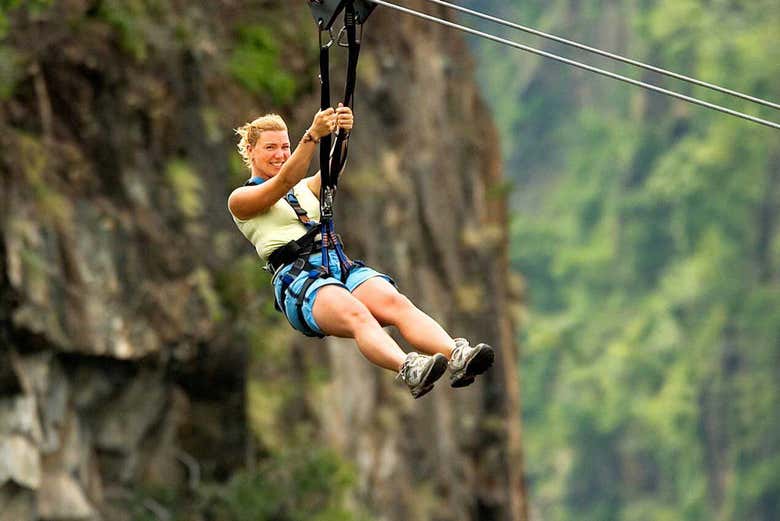 ¿Estáis preparados? Os lanzaréis al abismo y sentiréis cómo vuestra adrenalina se dispara al superar los cien kilómetros por hora. Sobrevolaréis una de las gargantas de Batoka y obtendréis unas vistas únicas desde el aire del entorno natural de las Cataratas Victoria desde 120 metros de altura. ¡Un recuerdo inolvidable de vuestro viaje a Zimbabue!
