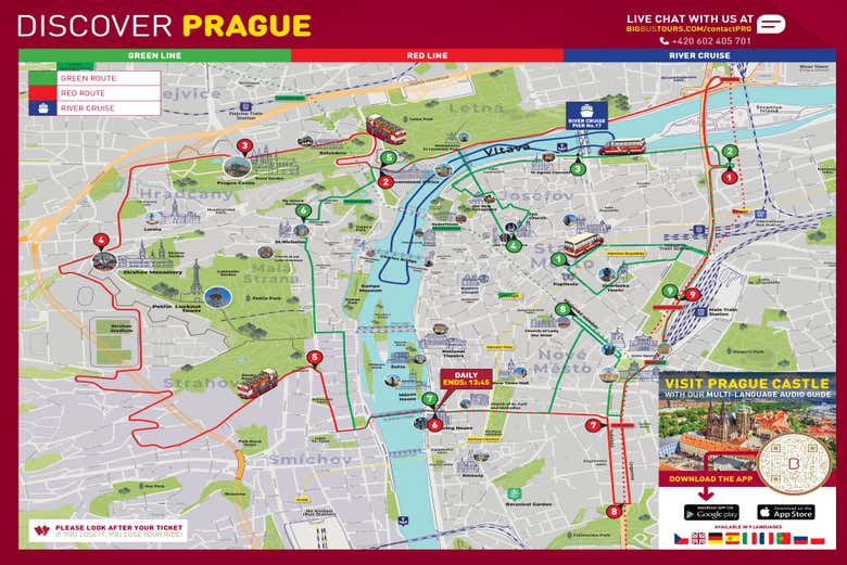 Le bus touristique Big Bus de Prague offre un itinéraire très complet pour découvrir la capitale tchèque de la manière la plus confortable possible. Le véhicule a deux étages, est à toit ouvert, comprend un audioguide en français et propose deux parcours différents. De plus, selon le type de modalité choisie, une balade en bateau sur la Vltava est également incluse.