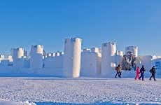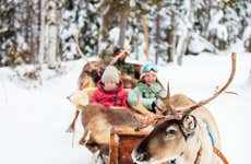 Une balade de 10km en traîneau tiré par des huskies est une façon originale et amusante d'explorer les paysages féeriques de la Laponie.