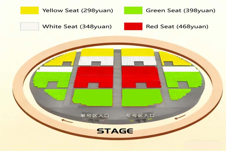 Tout au long de la représentation, les sièges tourneront selon différents axes et vitesses en fonction des scènes, vous faisant passer des rues de l’ancienne Xi’an au désert de Gobi. Veuillez donc noter qu’une fois le spectacle commencé, l’accès n’est plus autorisé, le système de rotation ne permettant pas d’entrées tardives pour des raisons de sécurité. À la fin de la représentation, les sièges retrouvent leur position initiale.