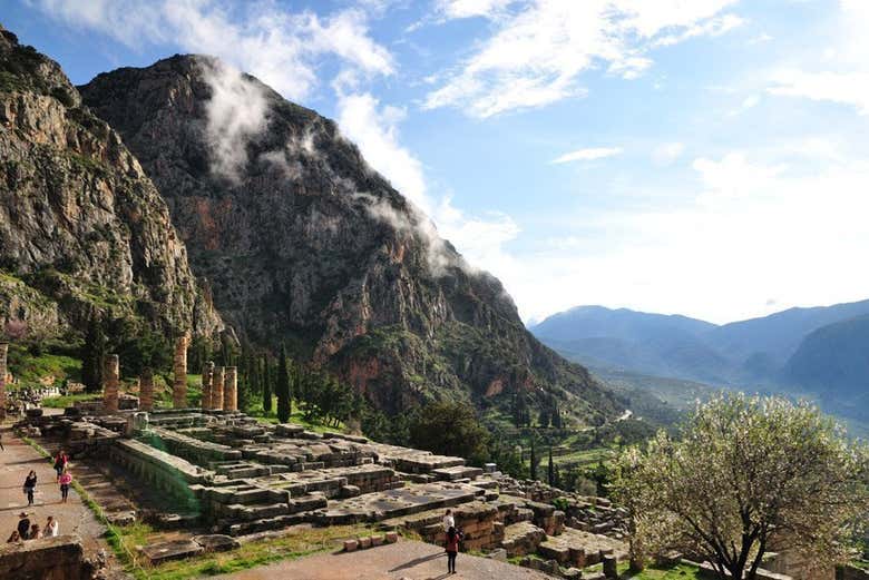 Alle pendici del monte Parnaso, in un paesaggio di impareggiabile bellezza, si trovano le rovine del Santuario di Apollo Pizio. Giunti in questo luogo mitico, visiteremo il Tesoro degli Ateniesi e il Tempio di Apollo.