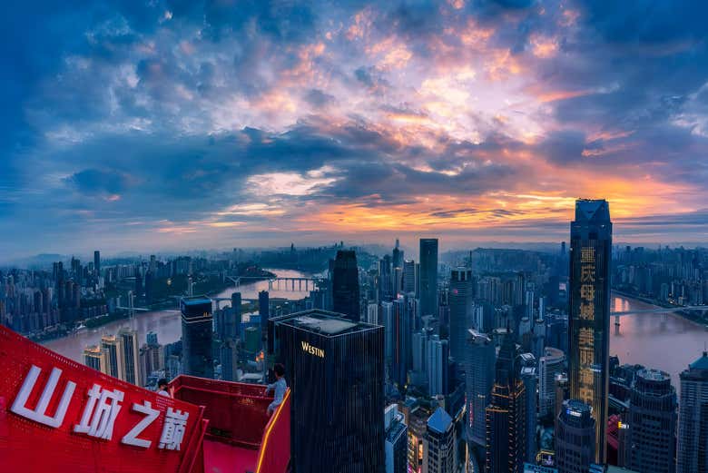 Davanti a voi si disegnerà la confluenza dei fiumi Yangtze e Jialing, due arterie fluviali che modellano il paesaggio e la storia di Chongqing. Di giorno, l'orizzonte si perderà in un cielo ampio e luminoso; al tramonto, i toni dorati avvolgeranno la città e, al calar della notte, migliaia di luci accese sotto i vostri piedi trasformeranno la vista in uno spettacolo ipnotico.