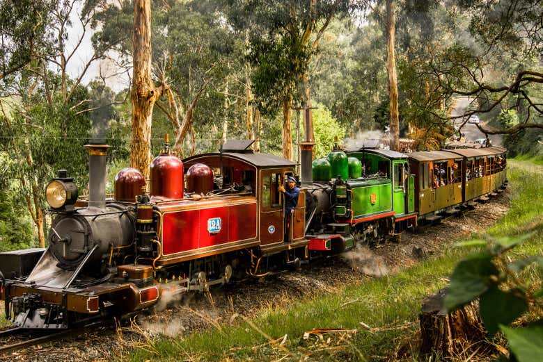 Nuestra primera parada será en los frondosos Dandenong Ranges. Aquí subiremos a bordo del Puffing Billy, el tren de vapor más famoso de Australia. En este trayecto de Belgrave a Menzies Creek, atravesaréis bosques de helechos mientras sentís la magia de la época dorada del ferrocarril. Además, si el museo está abierto, visitaremos su colección de locomotoras antiguas.
