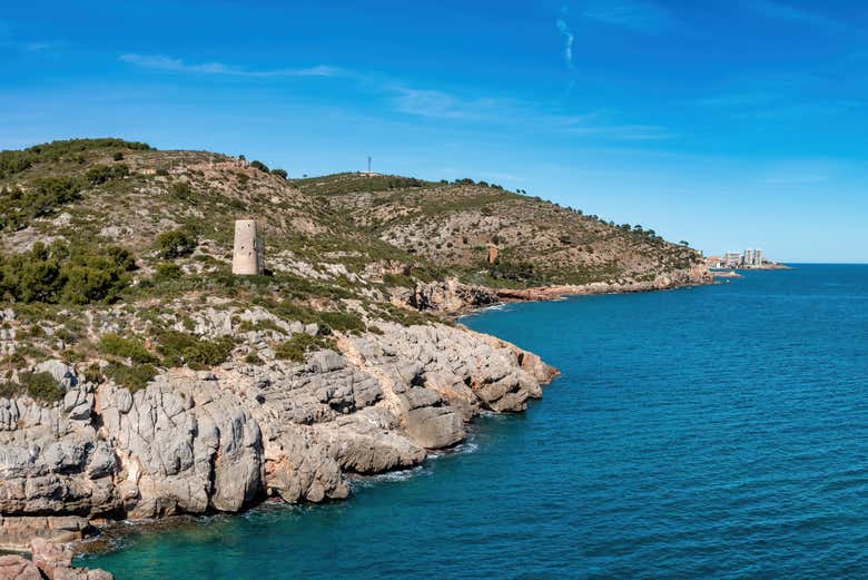 Asimismo, admiraremos las antiguas torres de vigilancia que se reparten por la Vía Verde de Oropesa, entre las que destaca la Torre de la Colomera. Después, llegaremos al límite con la bahía de Benicassim. En este último punto disfrutaremos de una parada para que podáis daros un refrescante baño.