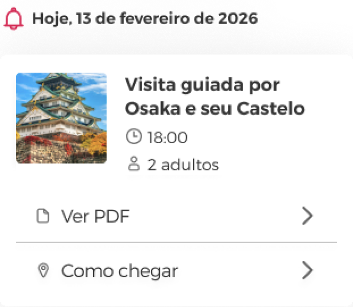 Diga adeus ao caos! Reservas divididas por emails e PDFs, algumas guardadas e outras não. Agora pode viajar com a tranquilidade de ter todas as suas reservas, planos e serviços organizados por destino.