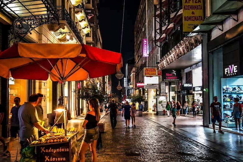 Por fim, depois de duas horas de passeio, você terminará a sua visita na praça Monastiraki, onde a história antiga se mistura com a Atenas moderna. Cercada por lojas, cafés e mercados, essa praça é a alma vibrante da cidade, onde a agitação do mercado de pulgas se mistura com a majestade da Acrópole iluminada como pano de fundo.