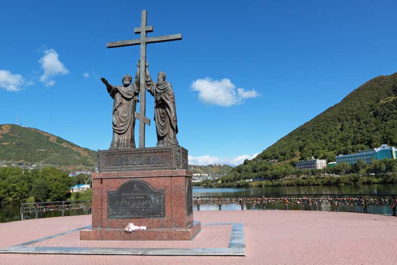 Continuaremos o tour privado com um passeio pela cidade para conhecer todos os monumentos históricos. Visitaremos a Theatre Square, onde se destacam o grande monumento a Lenin em um lado e, do outro, o monumento a São Pedro e São Paulo e o monumento ao general Zakolvo, primeiro governador de Kamchatka.